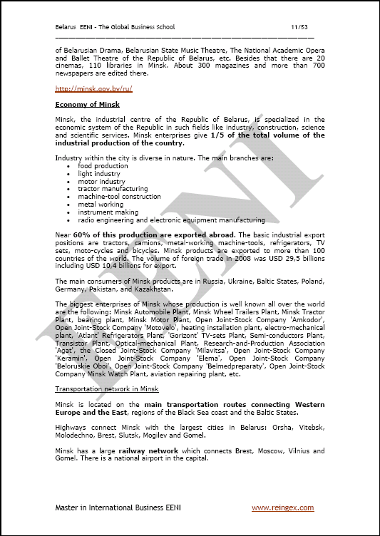 Ejemplo - Comercio internacional y negocios en Bielorrusia: