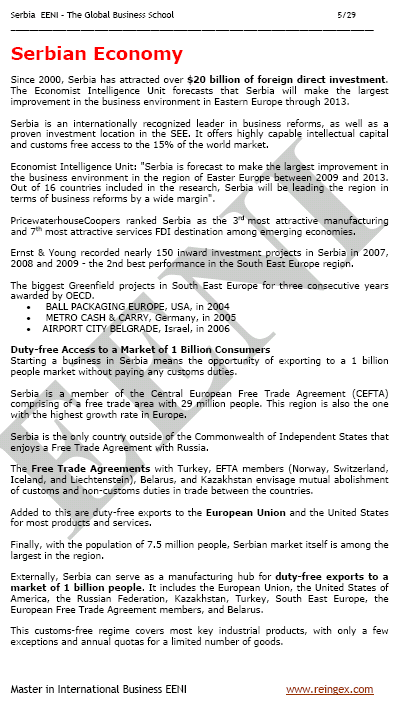 El Tratado de libre comercio con Rusia, firmado en agosto de 2000, hace de Serbia un destino particularmente interesante para los inversores extranjeros en el sector industrial. El acuerdo establece que los productos