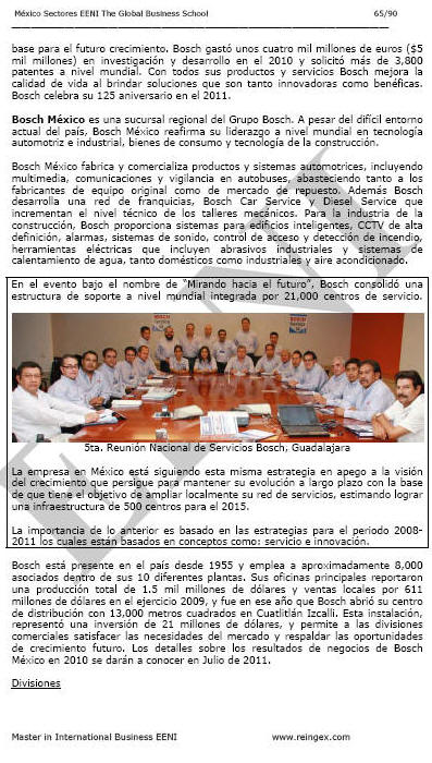 Empresas mexicanas. Volkswagen de México está situada en Puebla trabajando 14.900 personas. Esta planta tiene importancia estratégica para el Grupo Volkswagen ya que es la segunda más grande del Grupo fuera de Alemania, además el 80% de los coches producidos se destinan a la exportación a más de ciento veinte países del mundo. SuKarne inició exportaciones de productos cárnicos de bovino a los Estados Unidos en 1994 y a Japón en 2004. En la actualidad distribuye en el exterior más de 30.000 toneladas anuales, lo que le ha permitido ocupar el primer lugar como exportador de productos cárnicos a nivel mexicano. Sukarne exporta sus productos a los Estados Unidos, Japón, Corea del Sur, Hong Kong, Rusia, Puerto Rico, Vietnam y Angola. Bosch México fabrica y distribuye productos y sistemas automotrices, incluyendo multimedia, comunicaciones y vigilancia en autobuses, abasteciendo tanto a los fabricantes de equipo original como de mercado de repuesto. Bosch está presente en México desde 1955 y emplea a 8.000 asociados dentro de sus diez diferentes plantas. Sus oficinas principales reportaron una producción total de 1.5.000 millones de dólares y las ventas locales por 611 millones de dólares. Tata Servicios de Consultoría México comienza sus operaciones en la ciudad de México en 2003, para abrir en 2007 su GDC en Guadalajara y en 2009 en Querétaro. Desde su comienzo se ofrecieron servicios avanzados y especializados de tecnologías de la información, consultoría, test, desarrollo de software, tercerización de procesos de negocios, centro de contacto, soluciones de infraestructura de tecnologías de la información, los servicios industriales y de ingeniería y soluciones basadas en productos exclusivos de TATA tanto para clientes existentes como potenciales. TATA TCS pertenece al conglomerado indio TATA.