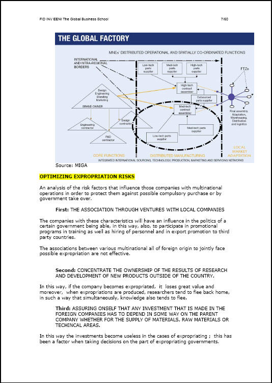 L'OCDE recopila i analitza estadístiques detallades sobre la inversió directa internacional i publica aquesta informació; ajuda també a canalitzar la inversió als països en vies de desenvolupament i als països en transició. Les pautes de l'Organització per a la Cooperació i el desenvolupament econòmic per a les empreses multinacionals són recomanacions dirigides pels governs a les empreses que inverteixen a l'exterior. El Consens de Monterrey fomenta mobilitzar la inversió privada, tant local com estrangera, per a assolir els objectius del desenvolupament del mil·lenni de les NU. L'Acord sobre les Mesures en matèria d'inversions relacionades amb el comerç, és un dels acords multilaterals sobre el comerç exterior de mercaderies, prohibeix les mesures en matèria d'inversions relacionades amb el Comerç exterior, per exemple les prescripcions en matèria de contingut nacional, que són incompatibles amb les disposicions bàsiques del GATT del 1994. La Unió Europea és un dels inversors més gran del món, la seva posició és la de considerar que la inversió estrangera directa és un mig clau per promoure el desenvolupament i creixement econòmic i social. La política europea en matèria d'inversió es desenvolupa en coherència amb les normes internacionals vigents més rellevants és a dir, l'OMC, l'Acord General sobre el comerç de serveis, les Directrius per a les empreses multinacionals desenvolupades al marc de l'OCDE, i d'altres instruments de l'Organització per a la Cooperació i el desenvolupament econòmic. L'Agència Multilateral de Garantia d'inversions (MIGA). Com a membre del grup del BM, l'Agència té com a missió promoure la inversió estrangera directa als països en desenvolupament per ajudar a donar suport al creixement econòmic, reduir la pobresa i millorar la vida dels persones. (c) EENI Global Business School (Escola de Negocis, 1995-2025) |