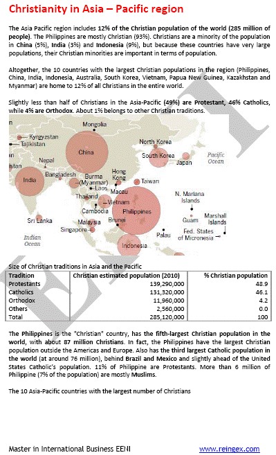 Asia-Pacific: 12% of the world Christian Population. The Philippines is Catholic