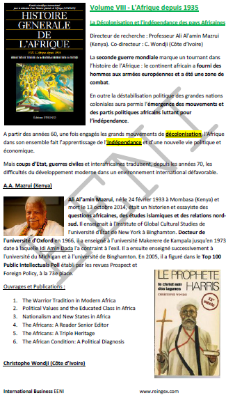 Les auteurs du volume VIII de l’histoire générale de l’Afrique de l’UNESCO (la décolonisation et l’indépendance) : Cheikh Anta Diop, T. CHENNTOUF, I. HRBEK, J. SURET-CANAL, M. OWUSU, Djibril Tamsir Niane, Michael CROWDER, I. HRBEK, Elikia M’Bokolo, D. CHANAIWA, J. I. ELAIGWU, Joseph Ki-Zerbo, T. TSHIBANGU, A. A. MAZRUI, J. F. Ade Ajayi, A. HABTE, T. WAGAW, E. KODJO, D. CHINWEIZU, M. TWADDLE, Albert Adu Boahen Kwadwo, P. KIPRE, C. COQUERY-VIDROVITCH, A. ADEDEJI, J. VANSINA, S. K. B. ASANTE, I. DER THIAM, E. KWAM KOUASSI... (c) EENI Global Business School 1995-2025