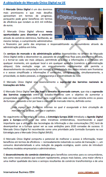 União Europeia Mercado Único. PortugalUnião Europeia: maior potência comercial do mundo. Comércio exterior europeuProgramas de ensino superior à distância (EAD Online) ministrados pela EENI Global Business School: Mestrado em Negócios Internacionais, Comércio Exterior.